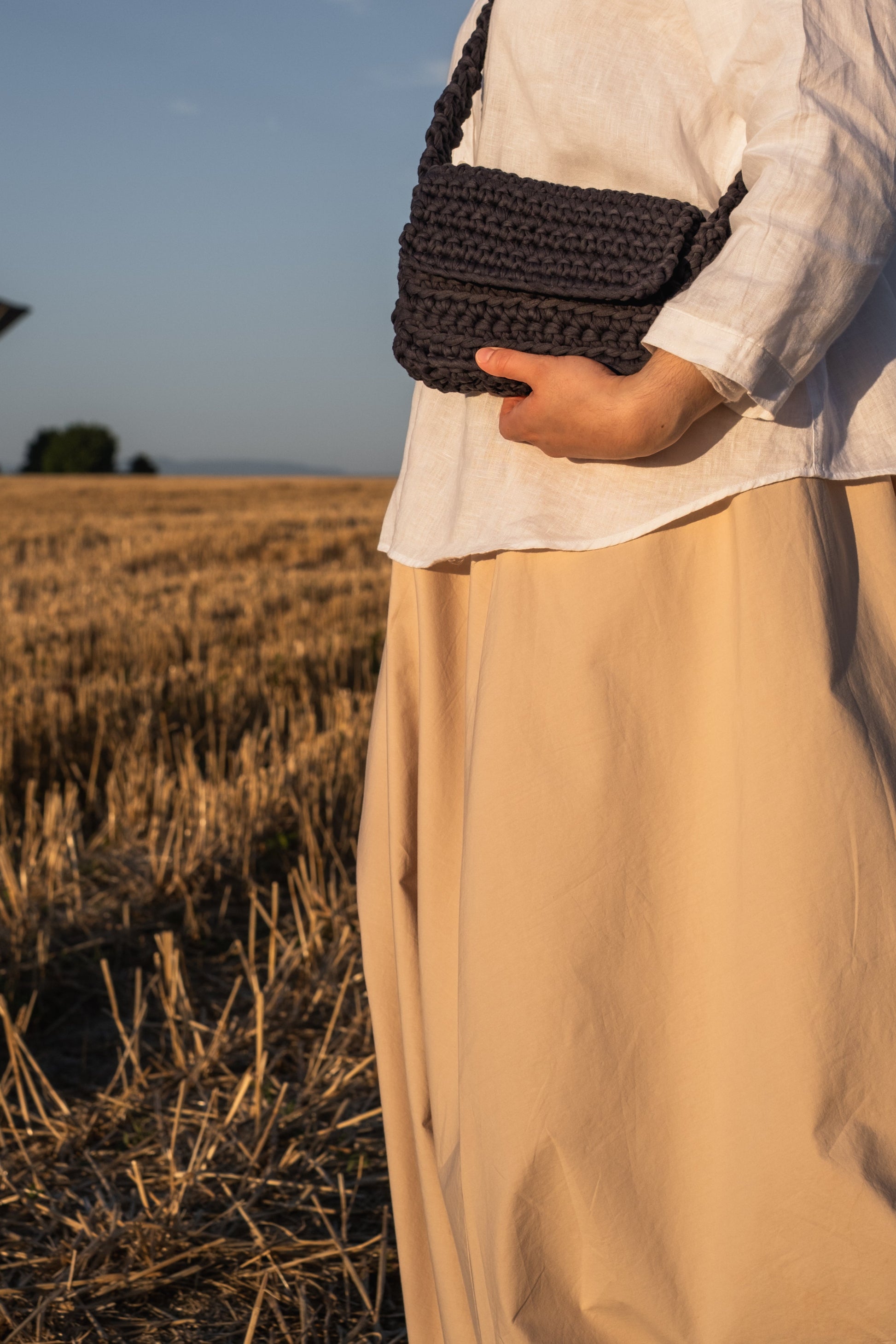 La sacoche Natsu (夏 – "été" en japonais) est un modèle porté épaule en bandoulière au charme solaire et texturé. Réalisé au crochet avec du jersey de coton recyclé, il allie douceur, tenue et caractère. Son style épuré et fonctionnel convient à tous les genres.