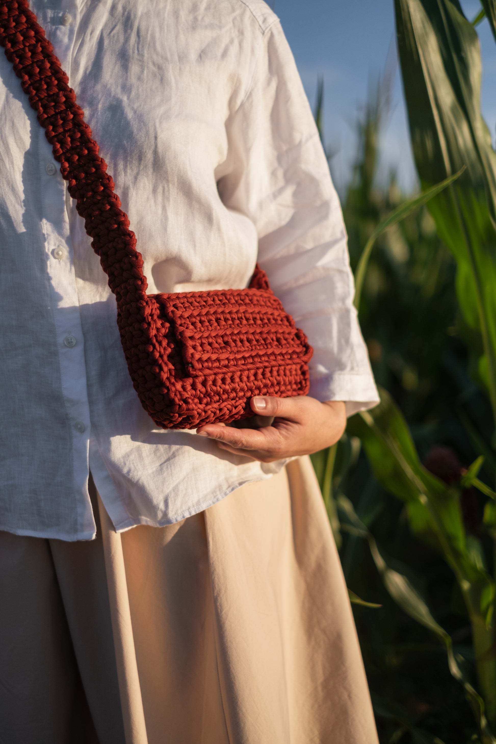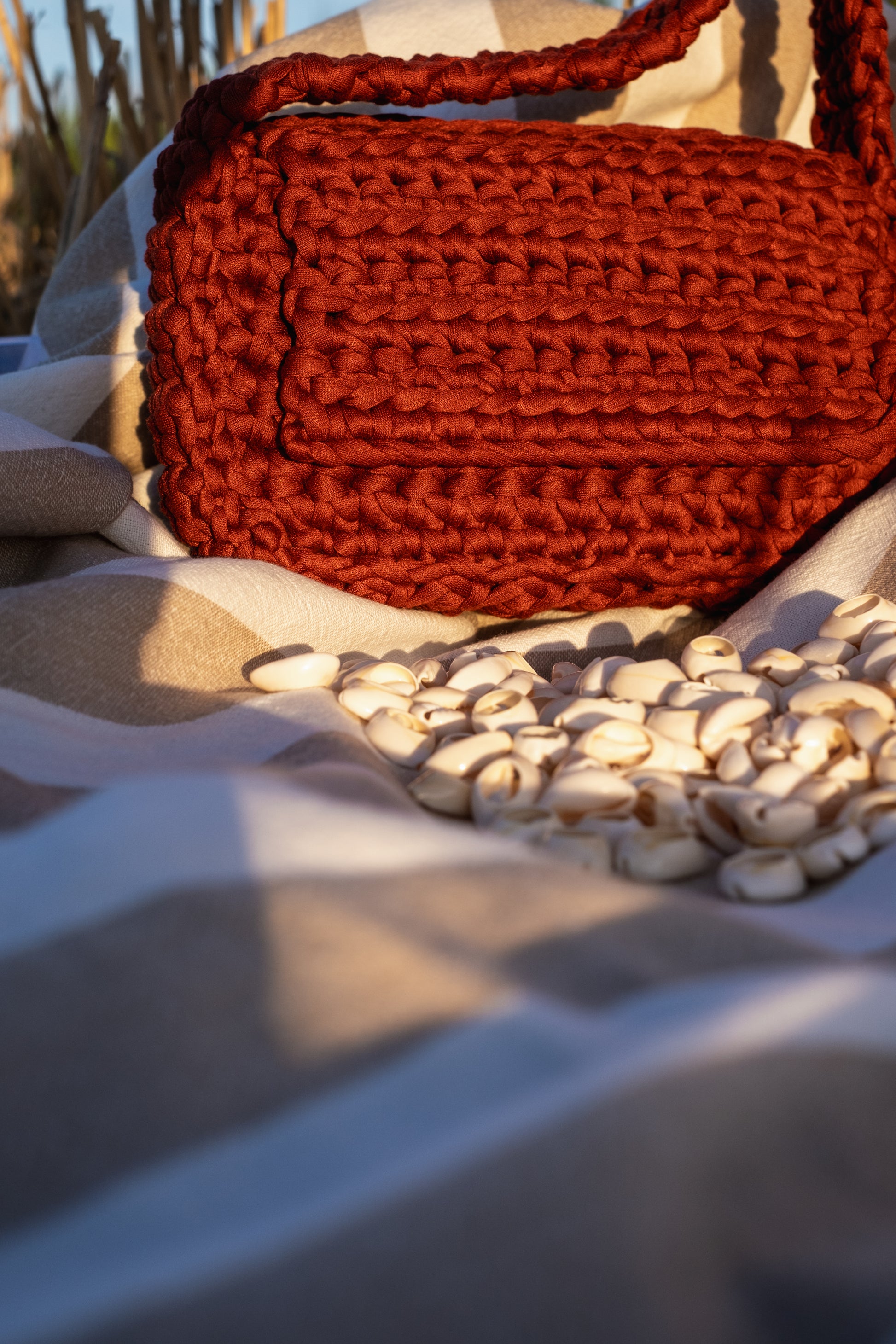 La sacoche Natsu (夏 – "été" en japonais) est un modèle porté épaule en bandoulière au charme solaire et texturé. Réalisé au crochet avec du jersey de coton recyclé, il allie douceur, tenue et caractère. Son style épuré et fonctionnel convient à tous les genres.